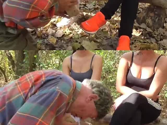 german proll Girls humiliate grandpa slave outdoor
