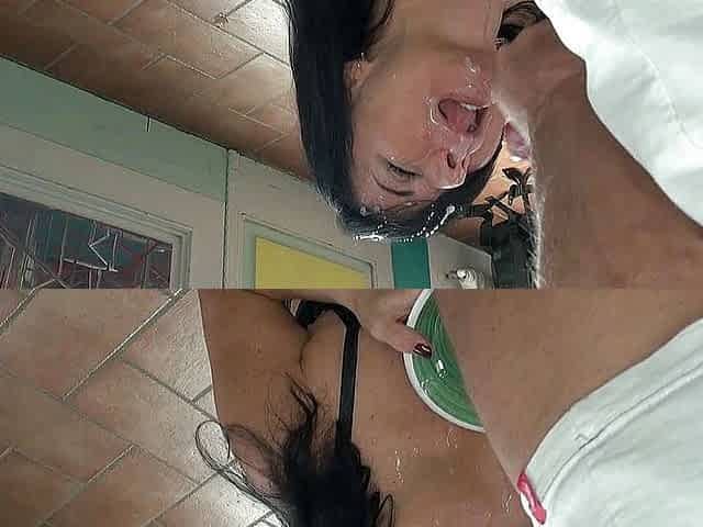 Horny skinny teen punk girl takes girlfriend to bukkake gangbang party