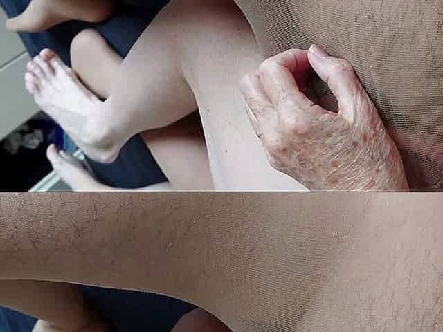 Cuddly date in pantyhose with horny granny 2