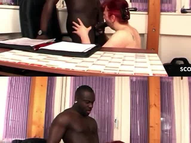 German Redhead Granny Seduce Black Guy To Fuck In Office
