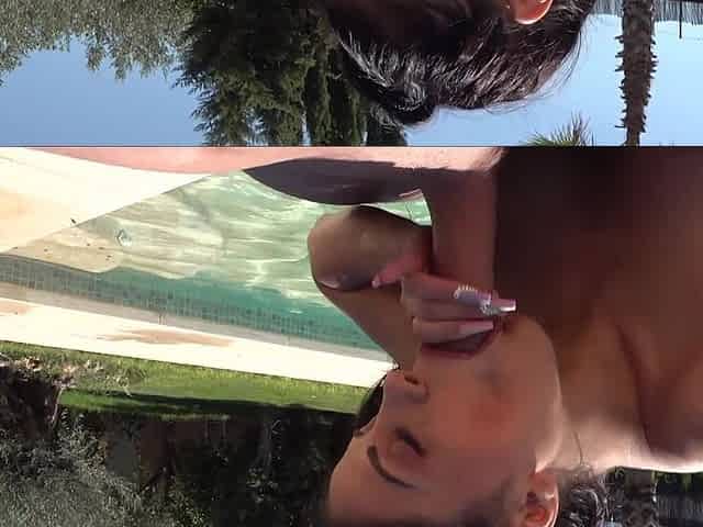 Outdoor blowjob from brunette amateur slut