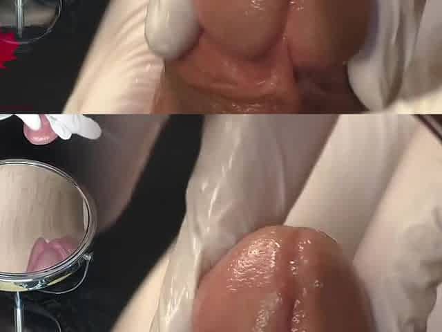 Watch In The Vanity Mirror As She Milks My Cock With White Latex Gloves