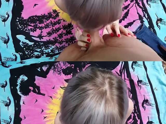 Busty Dirndl Power in the Alps - Hot Outdoor Blowjob Handjob with Pink Nails - Cum on my Tits