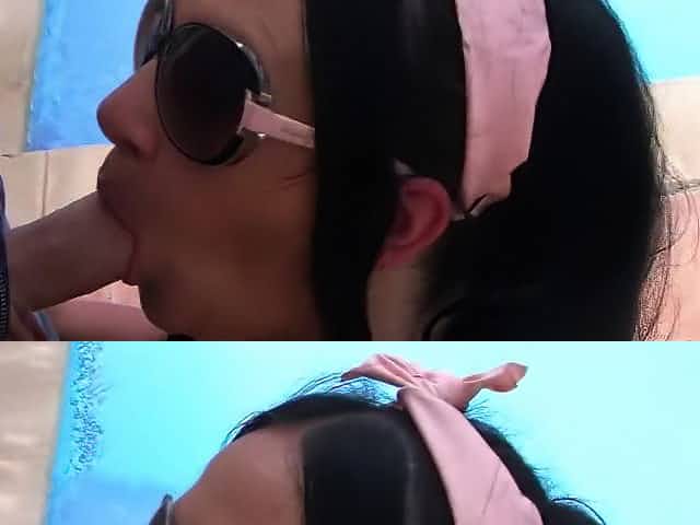The Busty Pink Latex Bitch - Swimming Pool Blowjob Handjobs - Cum on my Tits