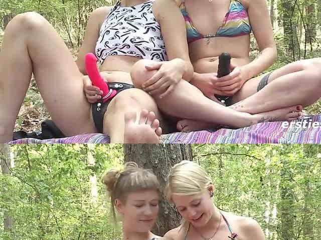 Ersties Intensive Strap on Action im Wald mit Ida und Isabella