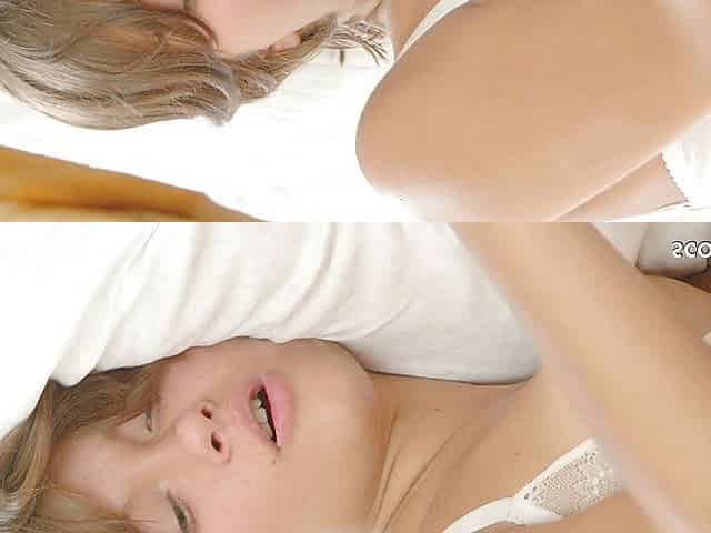 Stepsister catches horny blonde teen masturbating and helps her