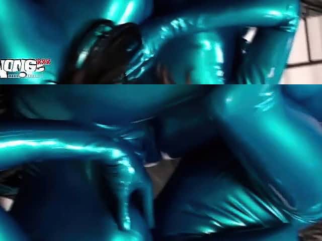 Two hot latex lesbians get covered in piss after finger