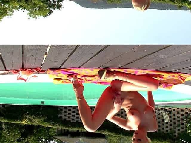 Hot Lesbian Blonde Has Poolside Solo Sex Fingering Her Wet Pussy