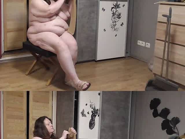 Fat German MILF with blonde hair masturbates her pussy