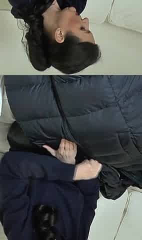 Zipper Test on a Dark Blue Down Coat, Lady Victoria Valente