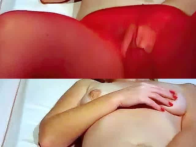 Die deutsche Milf Tina spielt in roten Strumpfhosen!
