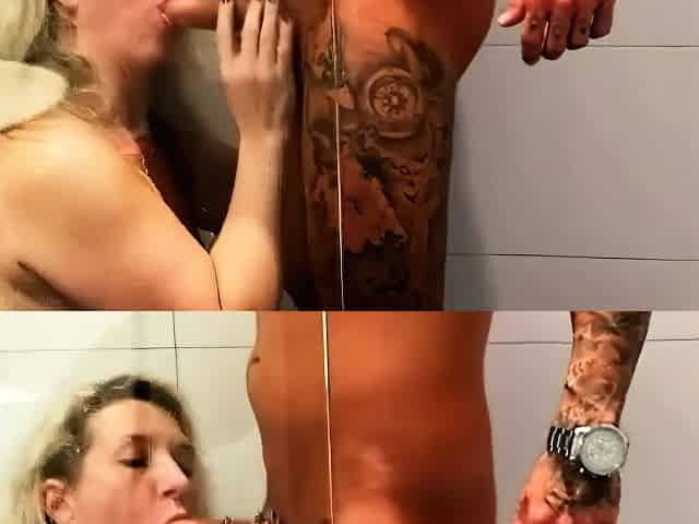 Mature blonde with big tits fucks in the shower