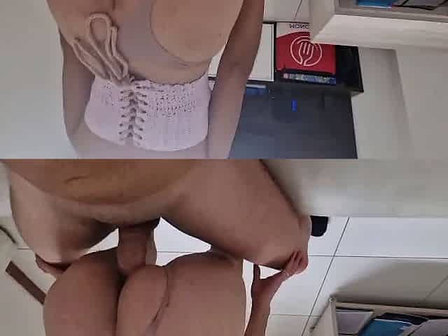 Stepsister gives me a sloppy deepthroat blowjob and then gets pounded doggy style without a condom