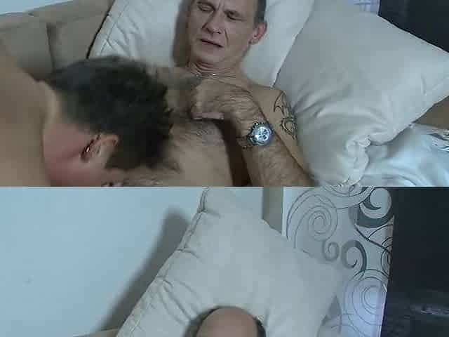 Petting with old woman in my bed 1
