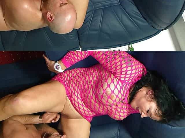 Chubby german woman gets her hairy cunt fucked on the sofa by horny man