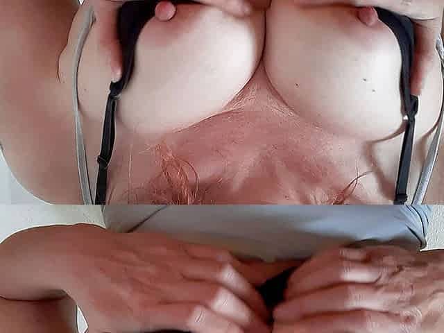 Redhead mature masturbates hairy pussy and gets fucked by husband