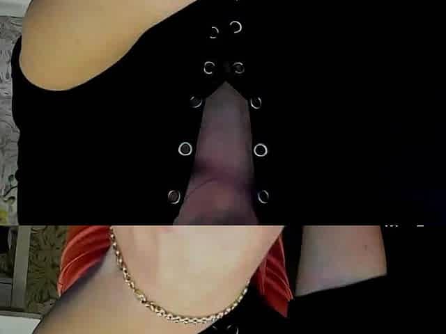 Footjob in ebony tights and wetlook, then came the load