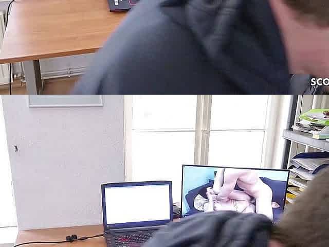 German mommy caught step-son watch porn and finish him with handjob