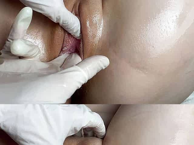 Fingered dirty mommy to close up oil orgasm