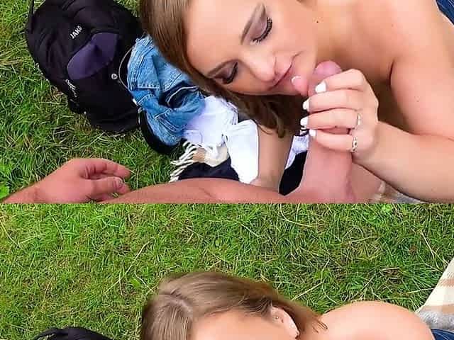 Sexy German Blonde Has an Outdoor Threesome Fuck in a Park