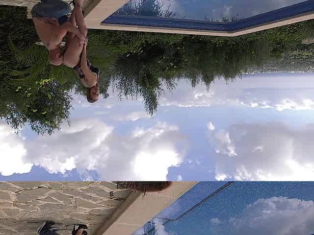 German tourists having POV outdoor sex by the pool