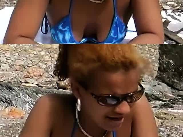 Spontaneous outdoor threesome with Latina in a bikini
