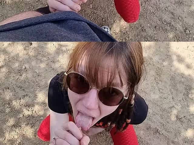 Redhead inseminated during outdoor sex in a green area