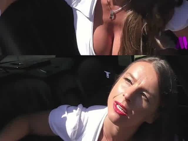 Public ass to mouth in the parking garage with blonde