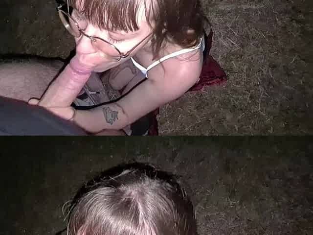 Zierliche Schlampe lutscht Schwanz im Wald!