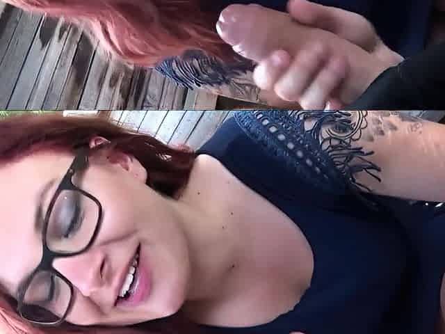 Redhead with glasses pussy doll sex in nature