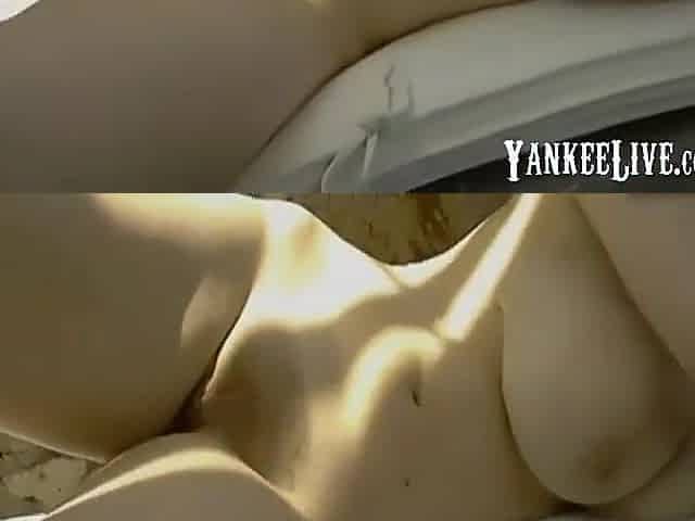 Wild amateur brunette with small tits enjoys uncircumcised lunch bang in the wind park!