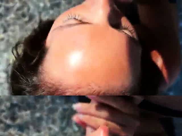 Nippleringlover Horny Milf Hot Bikini Flashing Pierced Nipples & Pussy While Cleaning Pool Outdoors