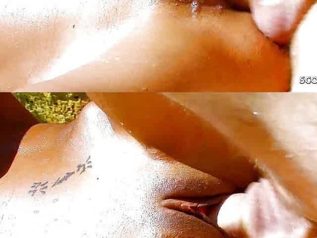 Black ebony teen during interracial sex outdoor