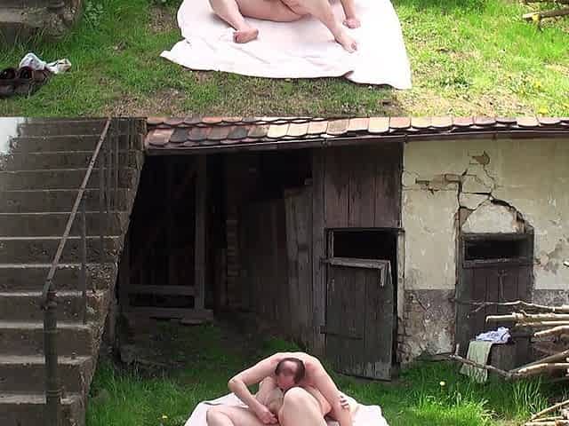 Hairy blonde babe is a fan of outdoor fucking,so her man and she will do that over and over again