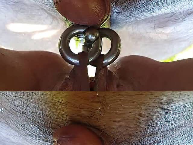 nippleringlover outdoor flashing pierced melons & vagina - stretched nipp & vagina piercings close up