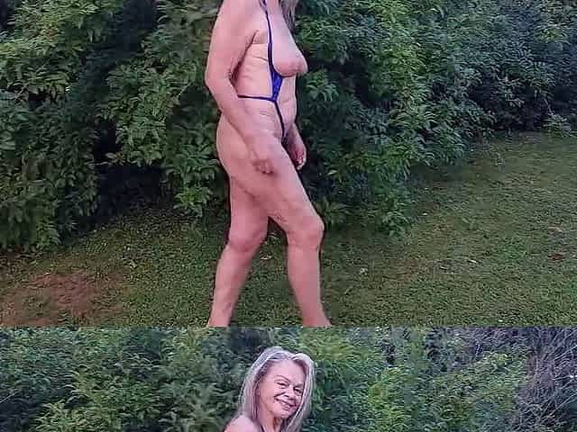 Watch 77 Years Old Martina Alsmost Naked in Her Garden