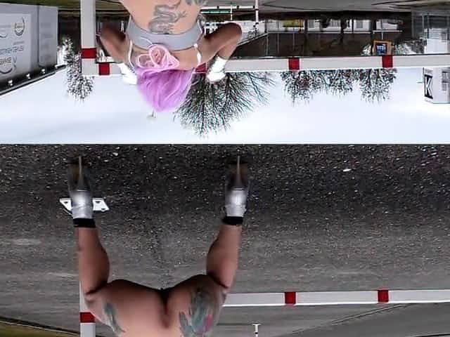 Geile Inliner Nutte Outdoor gefickt am Auto