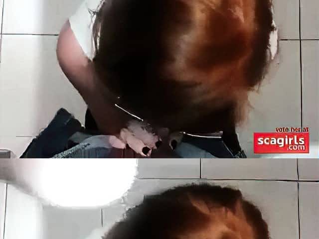 nerdy redhead giving head in public toilet