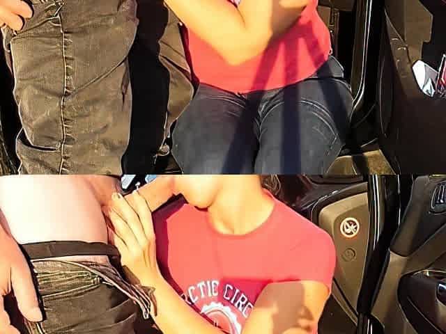 Hot MILF wird gefickt im Freien mit Sperma im Mund im Auto