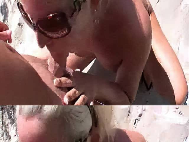 Non-Professional german angel blows stranger outdoors in a public place near highway
