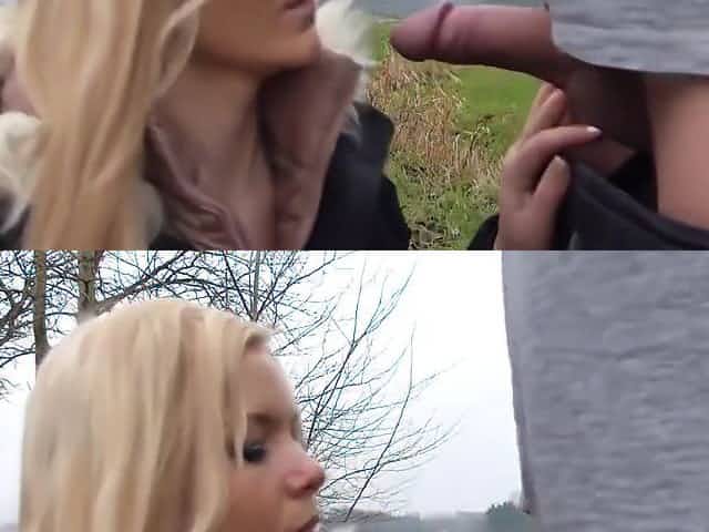 sexy amateur blonde gets quick creampie in park