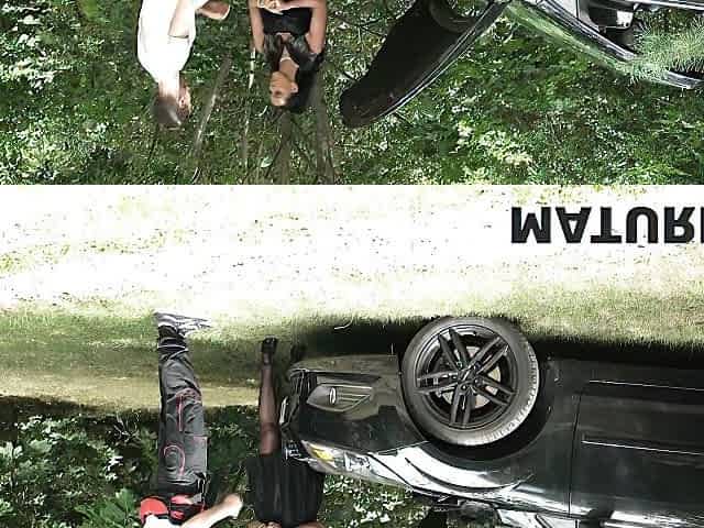 Horny Threesome with a Willing Slut Right Next to the Highway