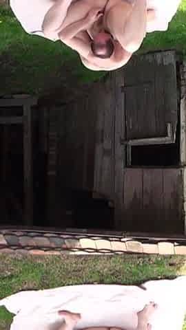 Fat German milf fuck dildo outdoors