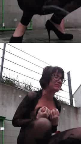 MILF Squirts Outdoors Next to a Pedestrian Road