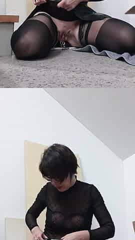 Skinny Tattooed Girl Work Wear Gets Horny Painting Solo Masturbation, Anal, Gapes, Squirt