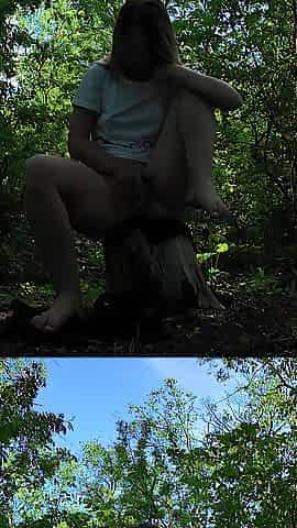Schoolgirl Takes Classmate Into the Woods Shows Twat and Bazookas Masturbates Publicly
