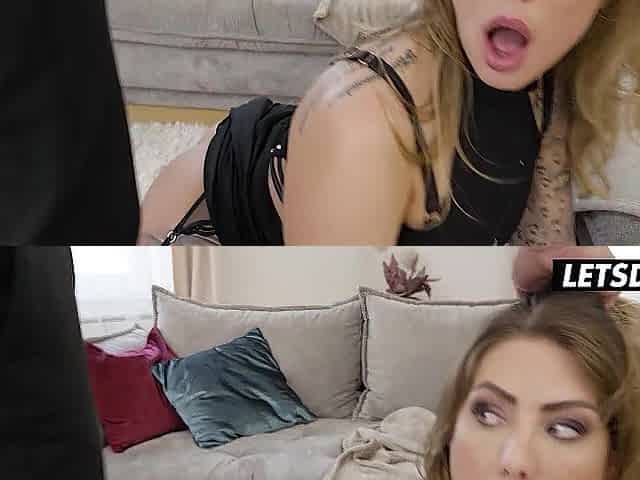 German Threesome With Two Hot Experienced Blondes In Net Outfit