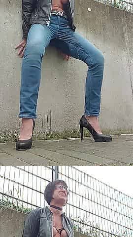 Smokin' cigarette in ebony hose outside make aperture for my love button and turn off cigaret by my Pee