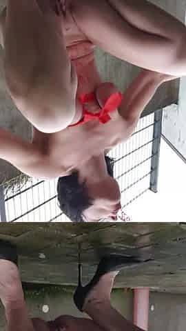 MILF Squirts Outdoors Next to a Pedestrian Road