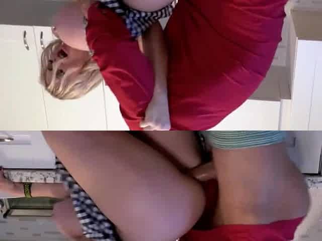 Charming girl sucks a long cock and gets fucked in the kitchen